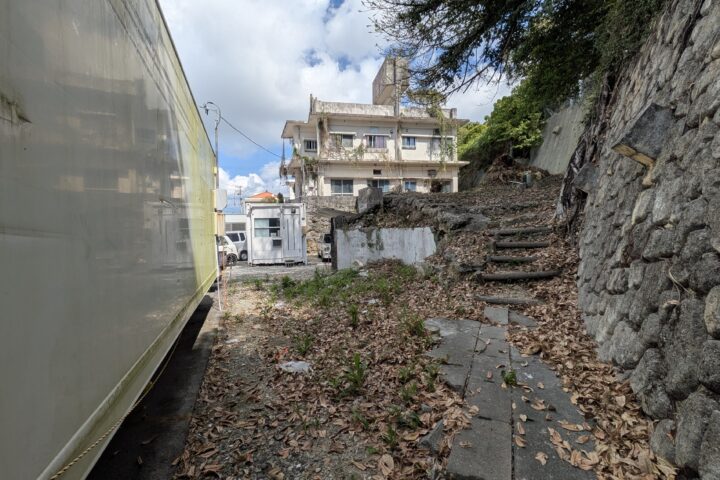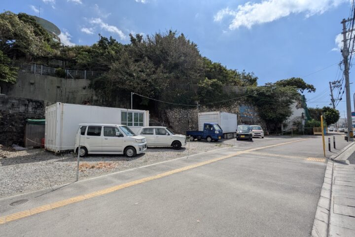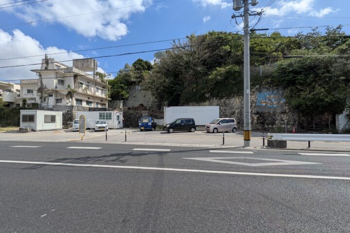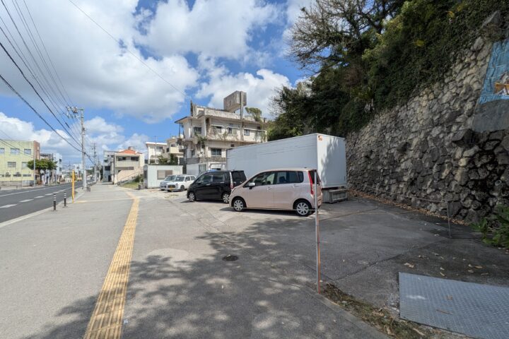 糸満ロータリー近く。平坦地。歩道も広く車両乗り入れは楽々。事務所や住宅付き事務所など色々検討出来ます。